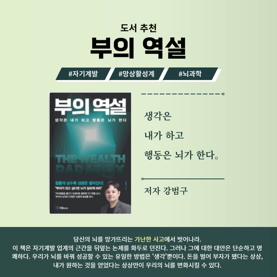 강범구 저자의『부의 역설』은 이 RAS의 원리를 바탕으로, 생각의 힘이 어떻게 우리의 행동과 성공을 이끌어내는지 쉽고 흥미롭게 설명하는 책입니다.