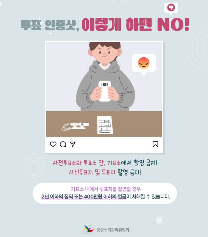 혹시 투표 인증샷, 아무렇게나 찍고 계신가요? 잘못하면 처벌 대상이 될 수도 있다는 사실, 알고 계셨나요?🤔