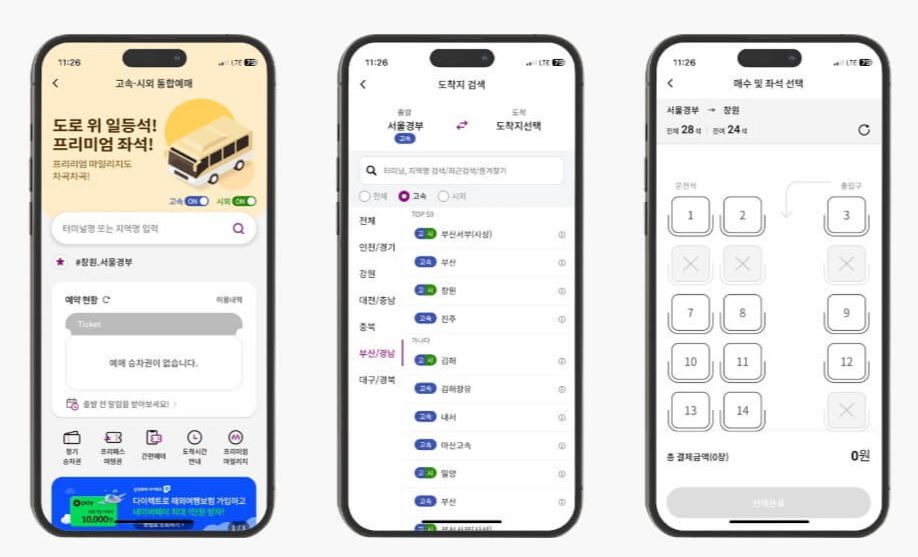 모바일 앱(버스타고/코버스)에서 예매 후 모바일 티켓으로 발권 가능합니다. 특히 주말 예매는 빠르게 마감되므로 빠른 결제 권장!