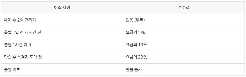 - 환불 규정 확인: 출발 1시간 전까지는 수수료 없이 취소 가능