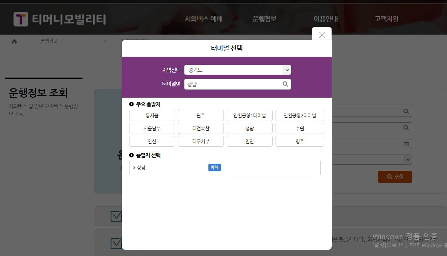평택 고속버스터미널 시간표 조회 방법
