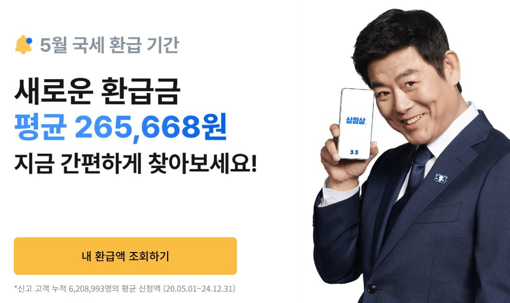 삼쩜삼은 홈택스가 어렵고 익숙하지 않은 사용자들에게 5년 치 환급 가능성을 한 번에 조회할 수 있도록 도와주는 민간 서비스입니다. 삼쩜삼 이용 방법은 아래와 같습니다.