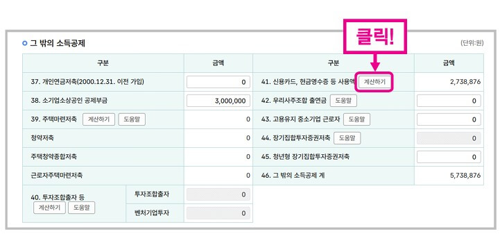 → 그 밖의 소득공제는 주택마련저축, 신용카드·현금영수증 등 소득공제 등을 입력하는 화면으로 앞에서 선택한 연말정산 공제내역이 반영