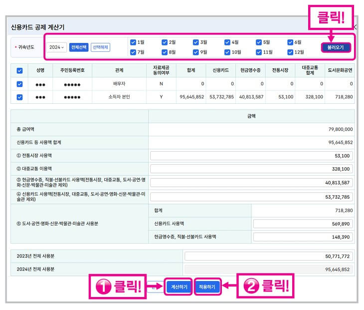A. 자동계산된 자료는 참고용입니다. 반드시 본인의 실제 경비 및 소득을 반영해 수정 후 제출해야 합니다.